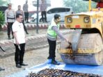 Medsoslampung – Kalianda, Kepolisian Resor (Polres) Lampung Selatan memusnahkan 489 botol minuman keras (miras) dan 101 liter miras jenis tuak. Kapolres Lampung