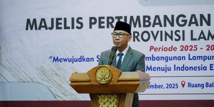 Bandar Lampung —- Gubernur Lampung, Rahmat Mirzani Djausal secara resmi mengukuhkan Majelis Pertimbangan Riset Daerah (MPRD) Provinsi Lampung periode 2025-2030, di Balai Keratun