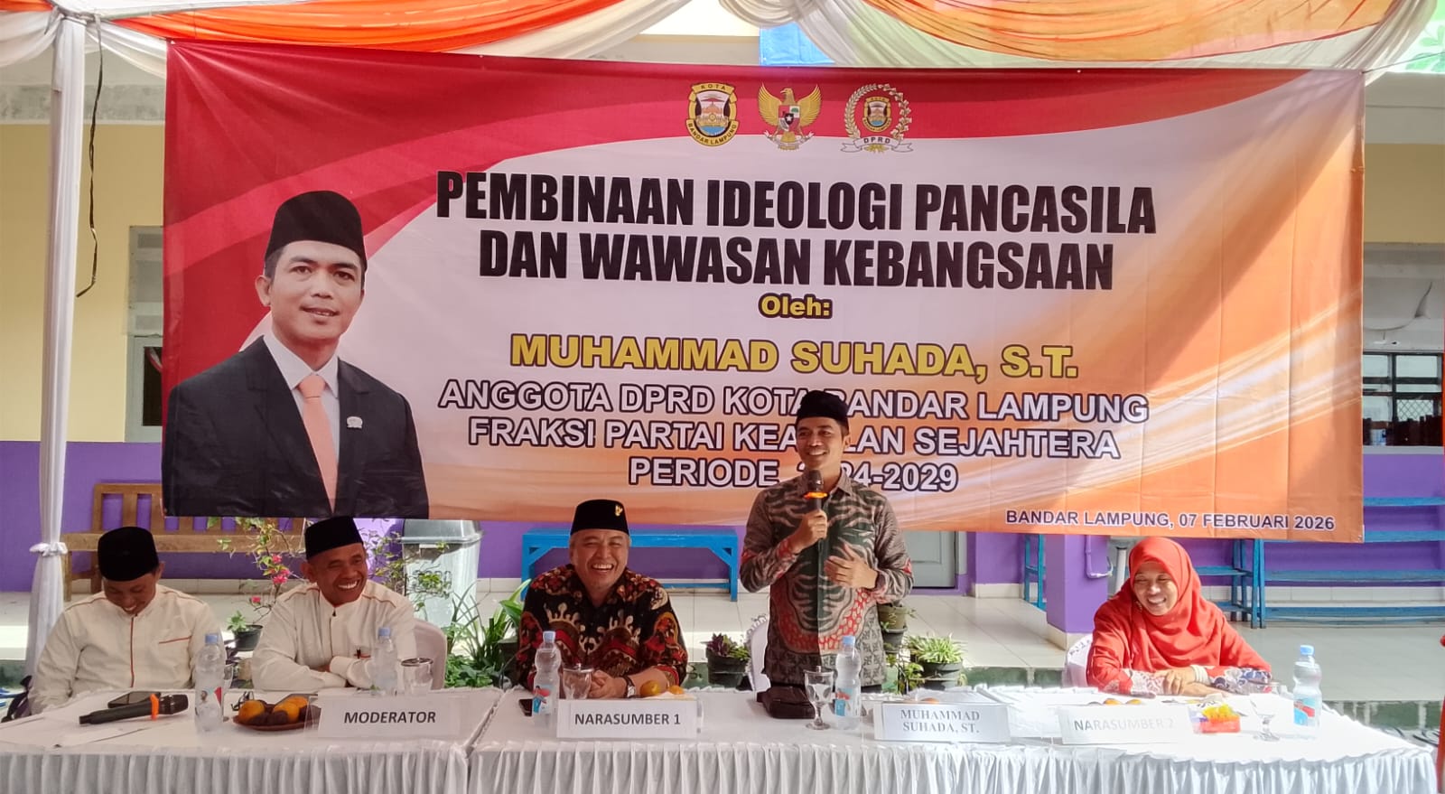 Anggota DPRD Kota Bandar Lampung dari Fraksi PKS, Muhammad Suhada, menggelar kegiatan Sosialisasi Pembinaan Ideologi Pancasila dan Wawasan Kebangsaan (PIP-WK) di Kelurahan Segala Mider, Kecamatan Tanjung Karang Barat, Sabtu 07 februari 2026.