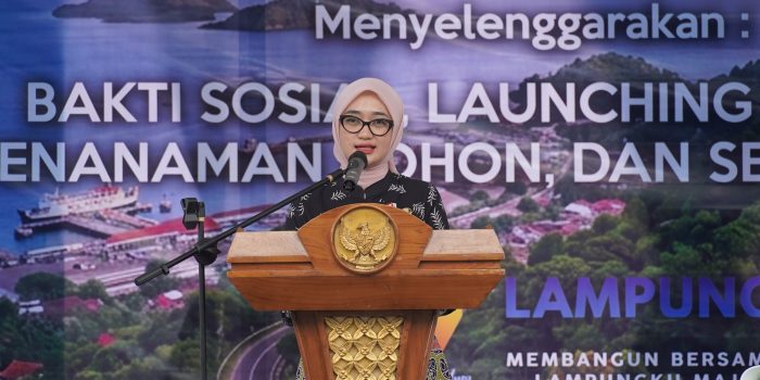 Medsoslampung – Ketua TP PKK Provinsi Lampung Riana Sari Arinal menyerahkan bantuan yang berasal dari Lembaga Koordinasi Kesejahteraan Sosial (LKKS) kepada Tim