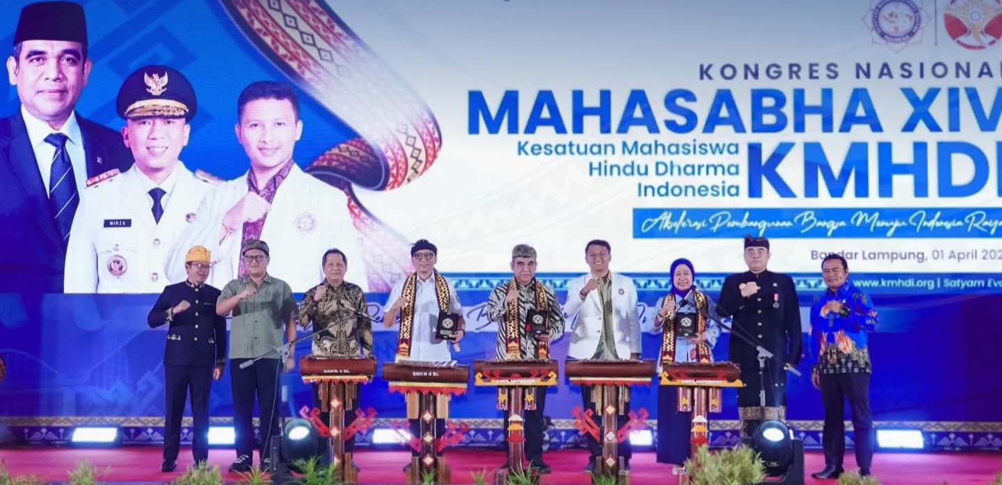 Bandar Lampung – Gubernur Lampung Rahmat Mirzani Djausal menekankan pentingnya nilai Tri Hita Karana sebagai landasan menjaga harmoni di tengah keberagaman masyarakat Lampung. Hal tersebut disampaikan saat membuka Kongres Nasional Mahasabha XIV Kesatuan Mahasiswa Hindu Dharma Indonesia (KMHDI) di Gedung Serba Guna Universitas Lampung, Rabu (1/4/2026).
