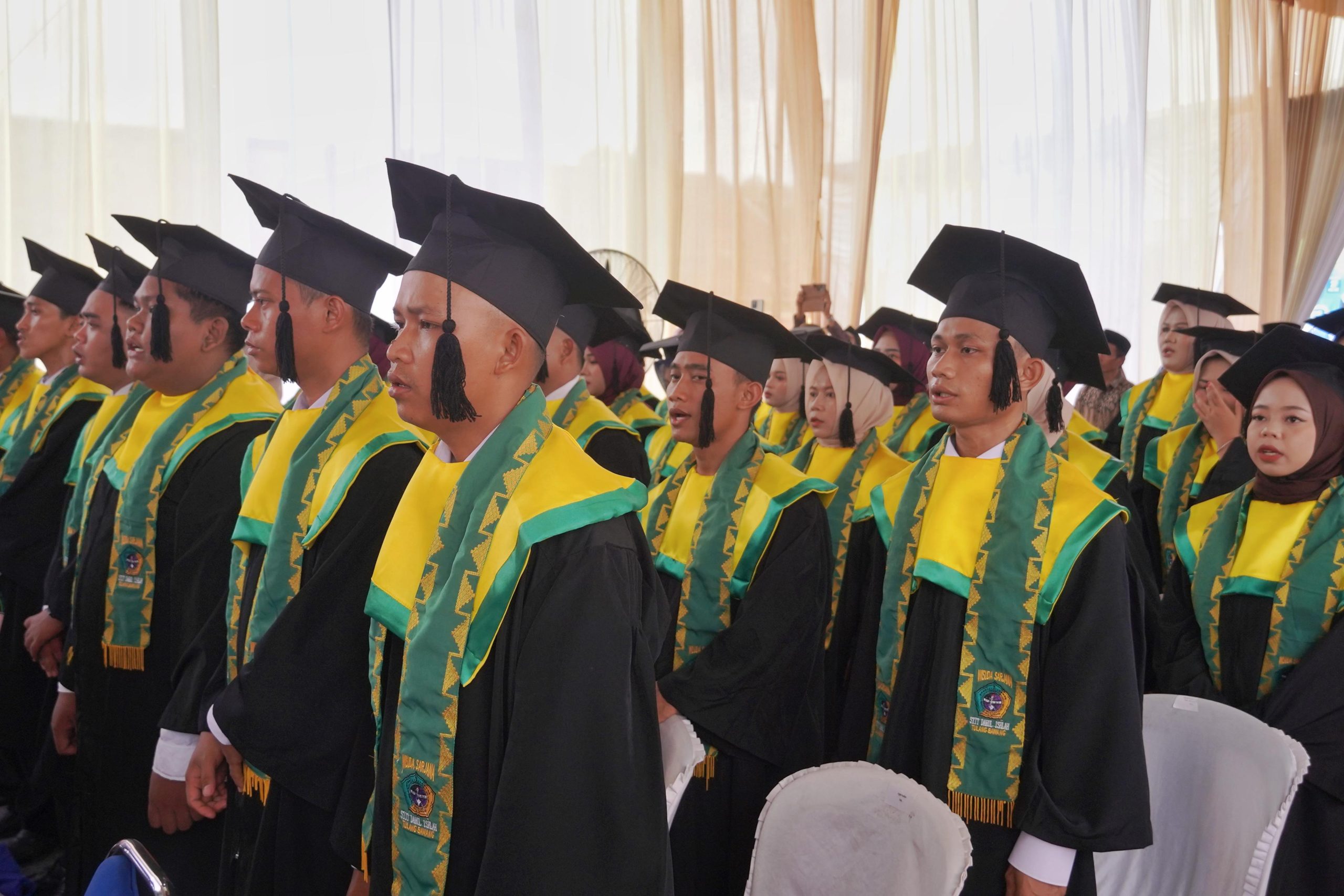 Wisuda perdana tersebut menjadi tonggak sejarah penting bagi STIT Darul Ishlah Tulang Bawang dalam mencetak generasi unggul, religius, dan siap membangun Lampung. (Dinas Kominfotik Provinsi Lampung).